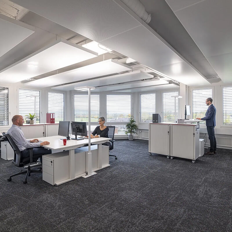 Wählen Sie zwischen bezugsbereiten und fertig möblierten Offices und Co-Working Arbeitsplätzen, sowie attraktiven Meetingräumen für Sitzungen oder Workshops. Eine Vielzahl an Gemeinschaftsräumen und offenen Bereichen für Gespräche oder Pausen machen Ihre Arbeit, Ihr Unternehmen zu einem Erlebnis – für Sie und Ihre Mitarbeitenden, Ihre Besucherinnen und Besucher, Tag für Tag.